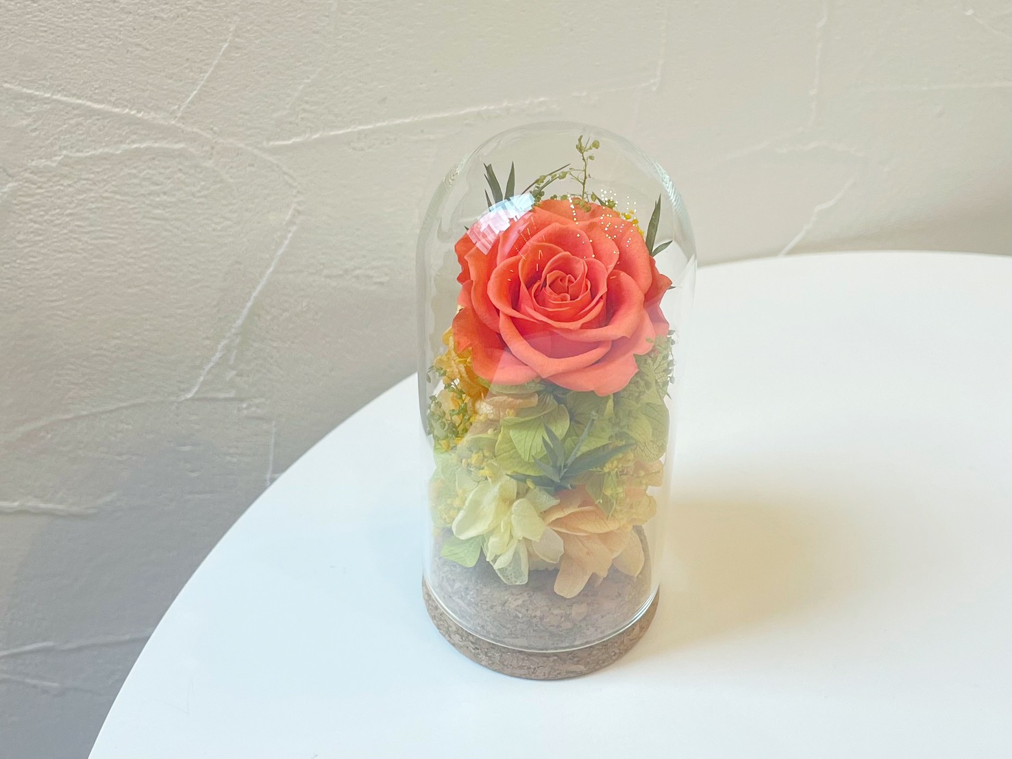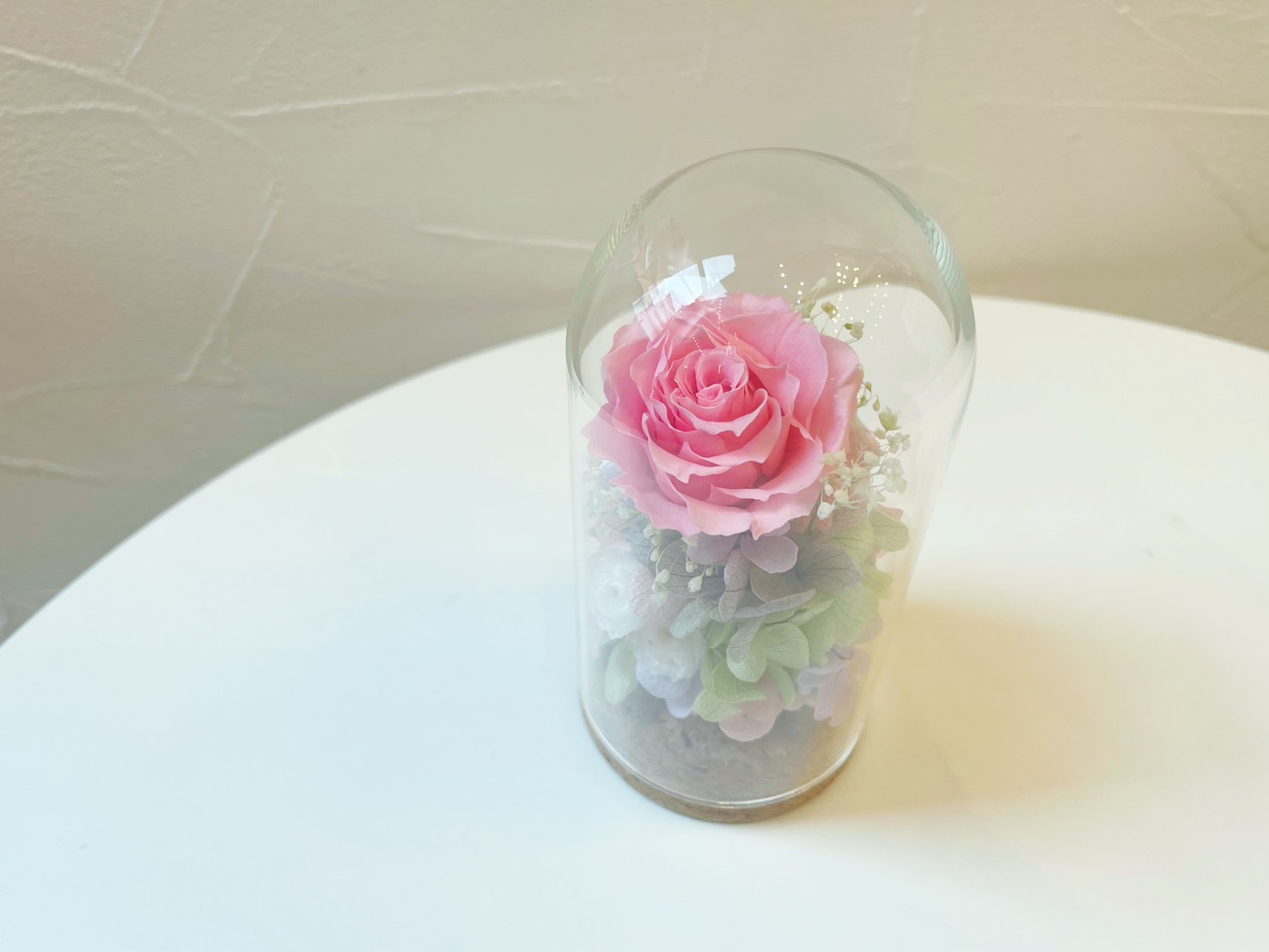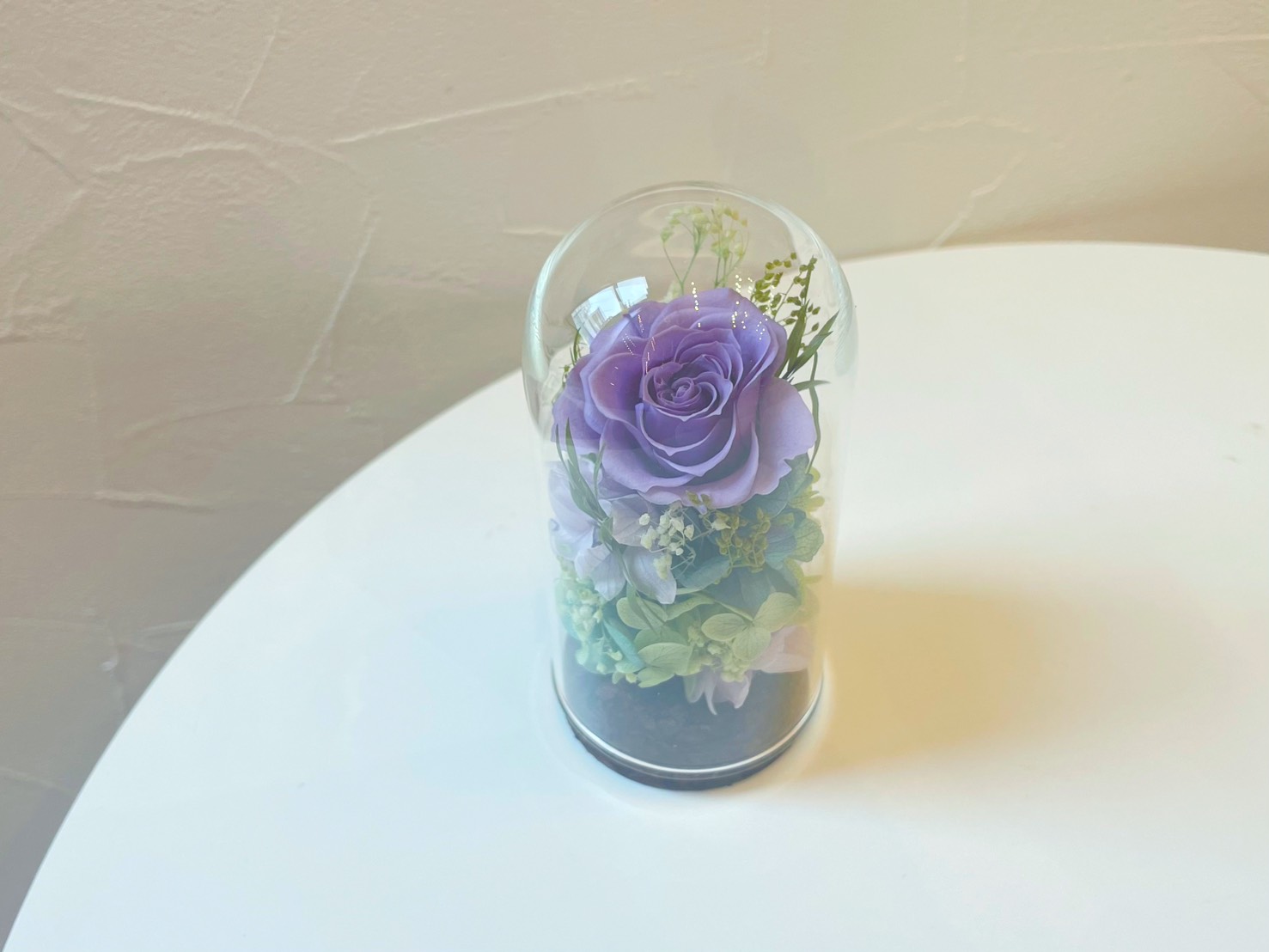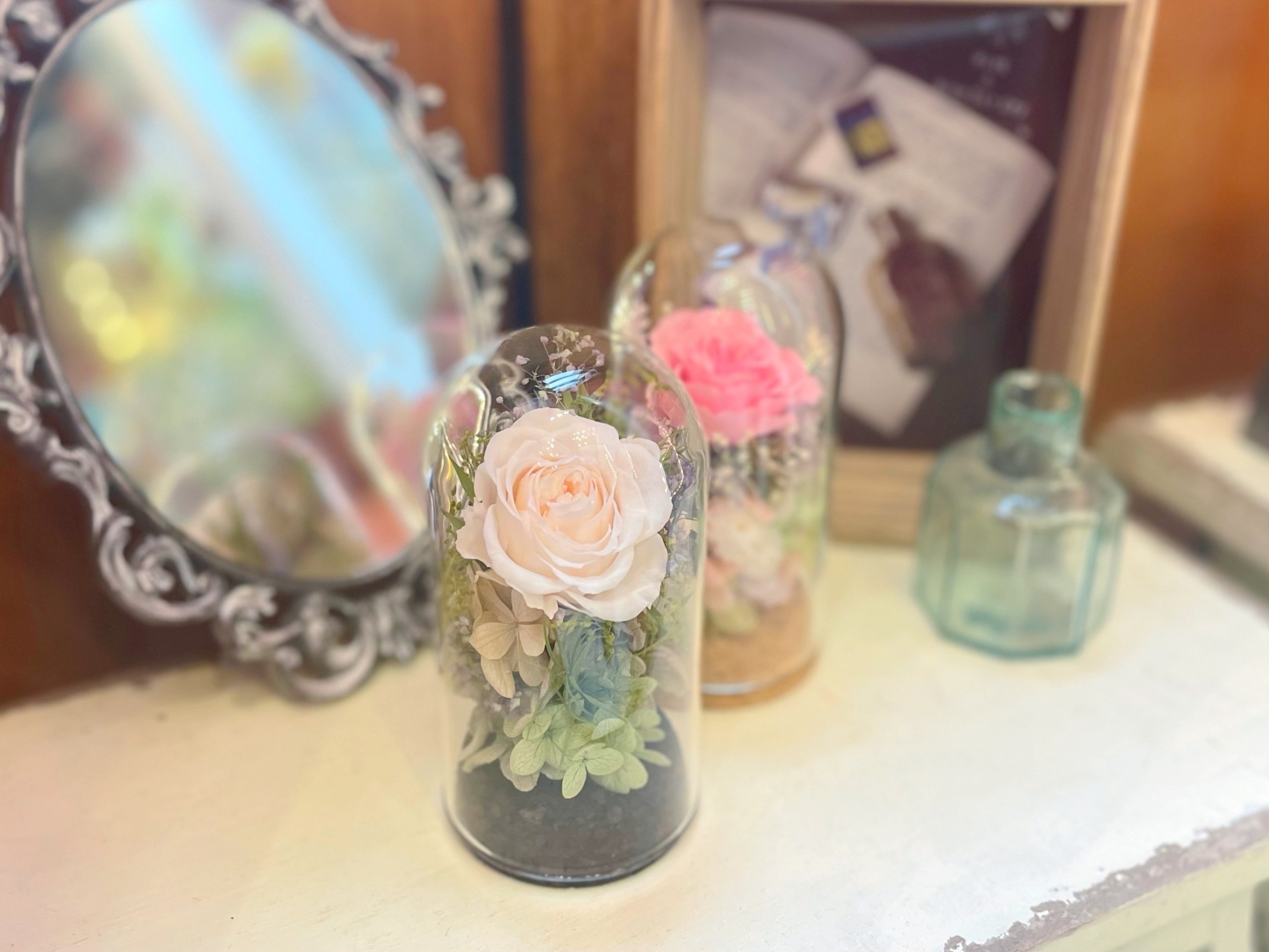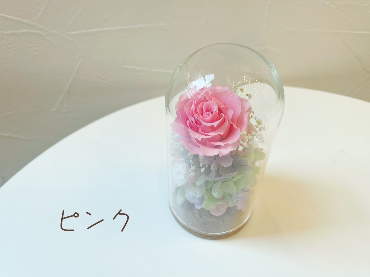 ガラスのドームがお花をキラキラと輝かせます。