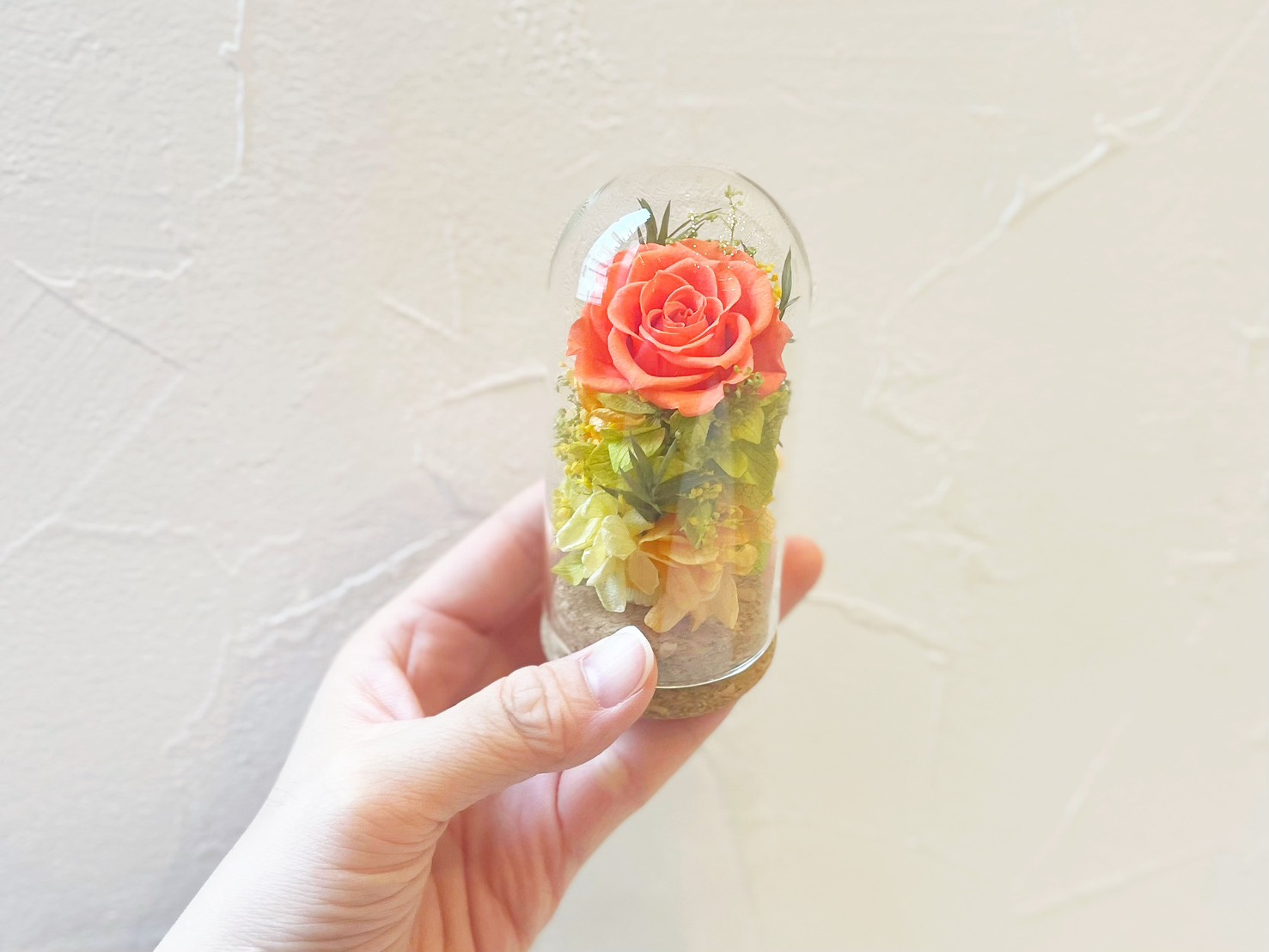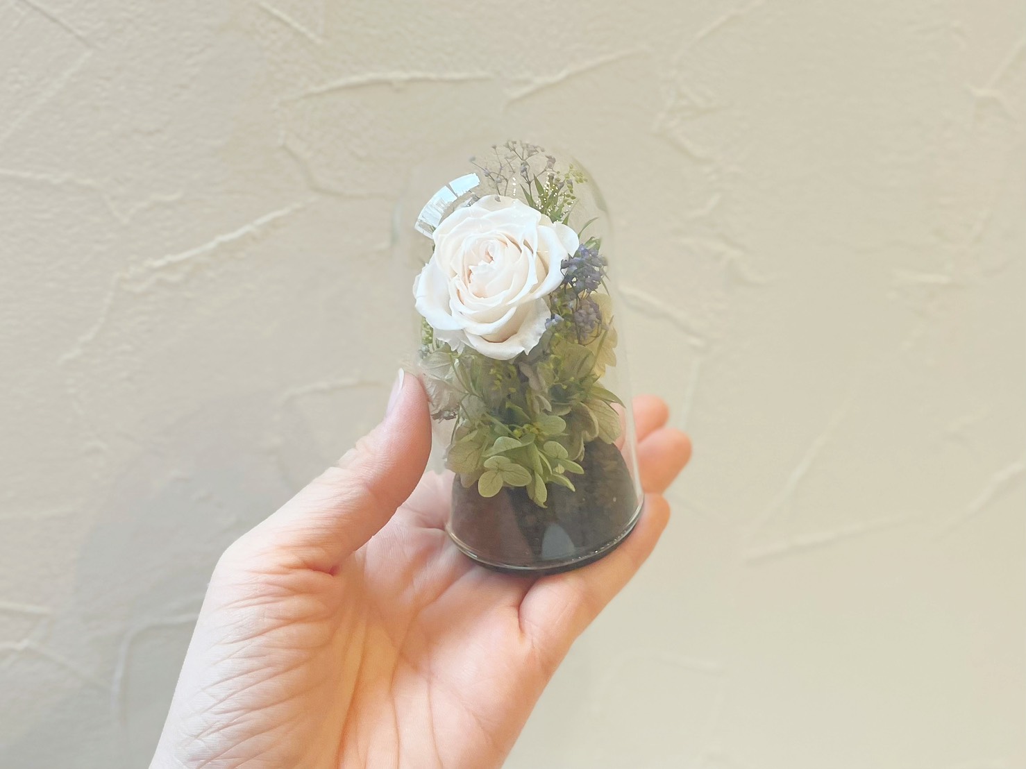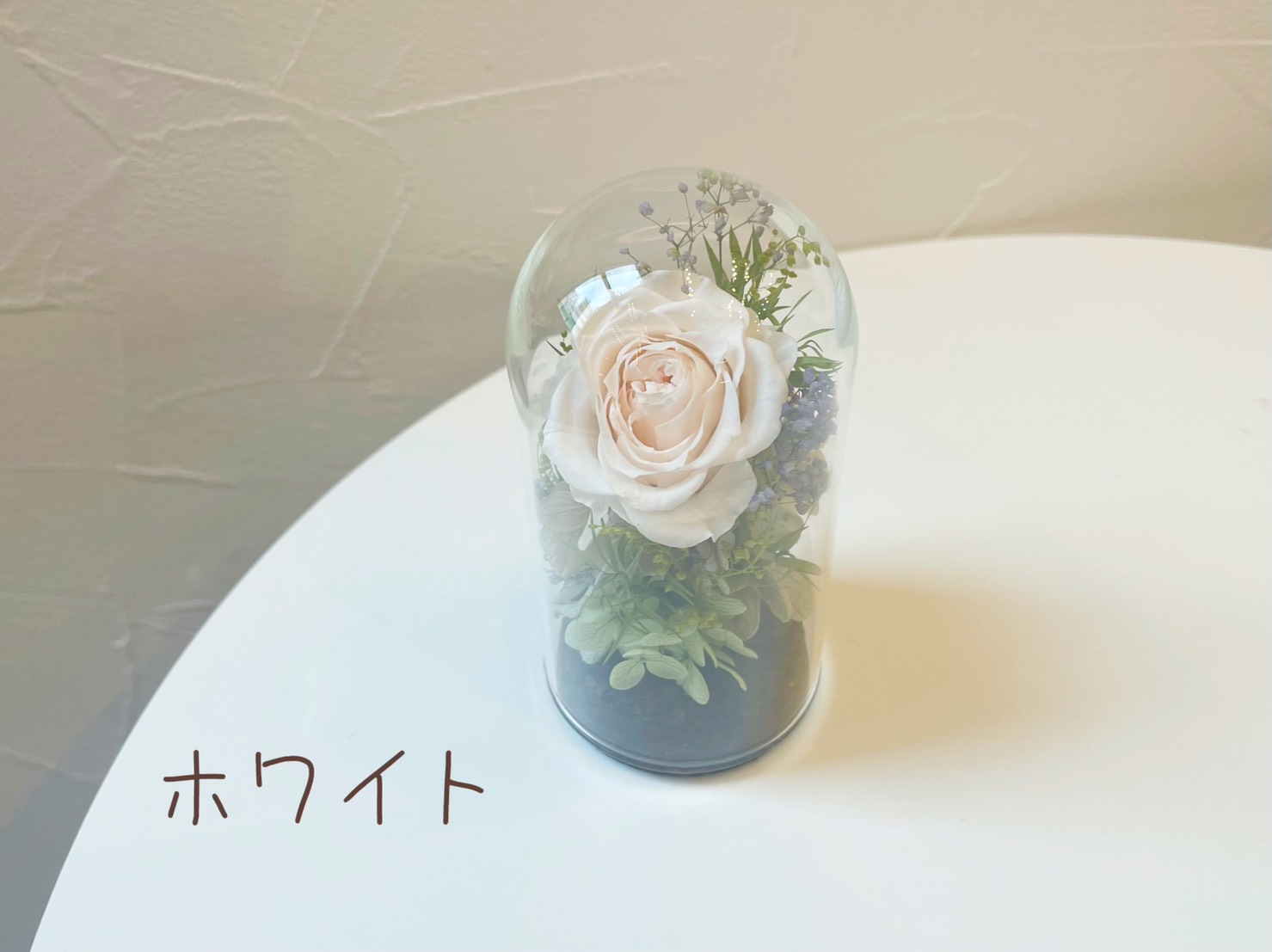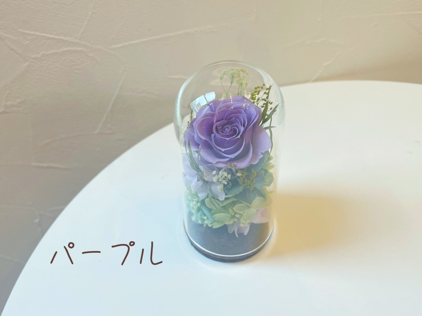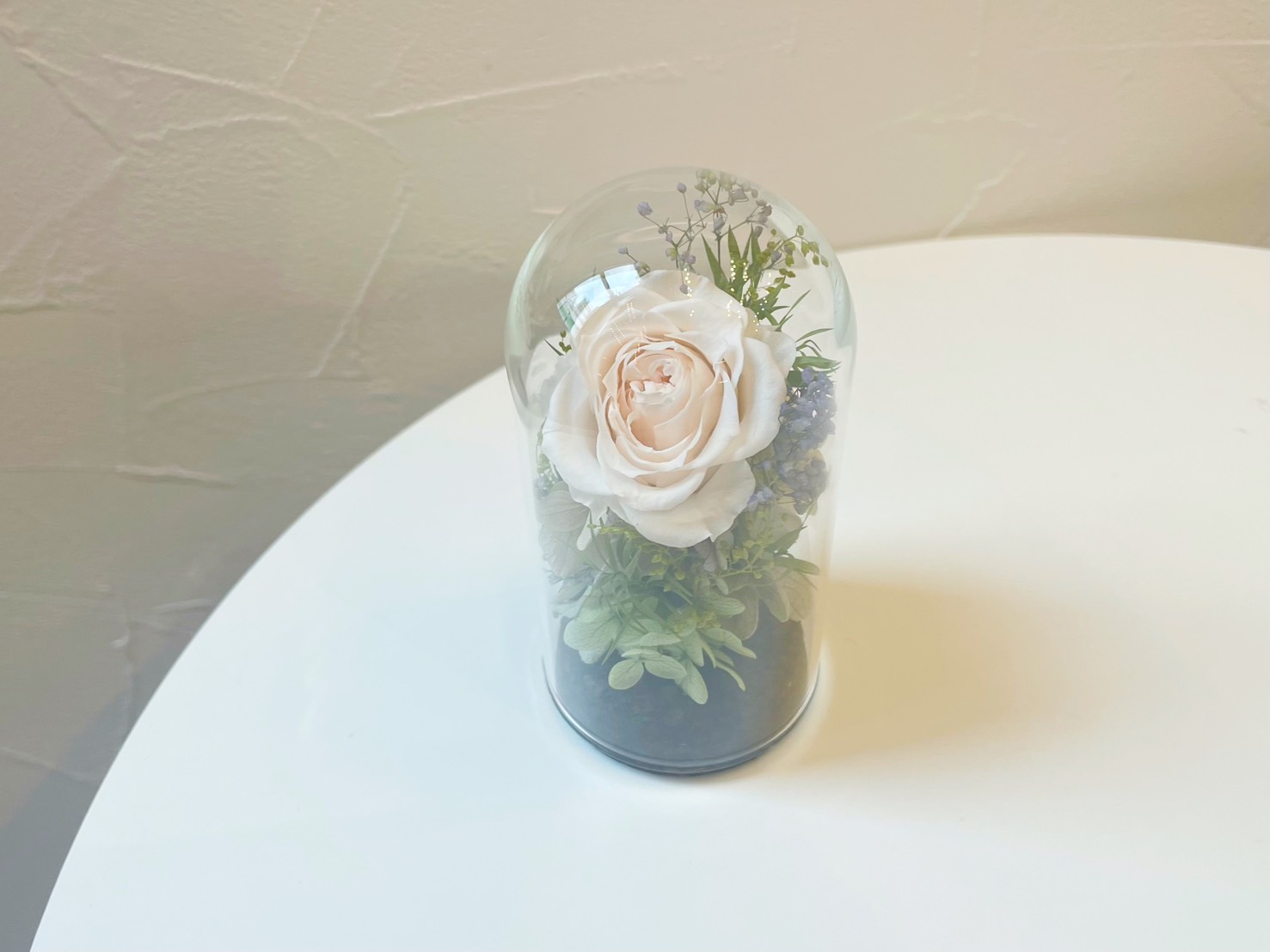 ガラスのドームがお花をキラキラと輝かせます。