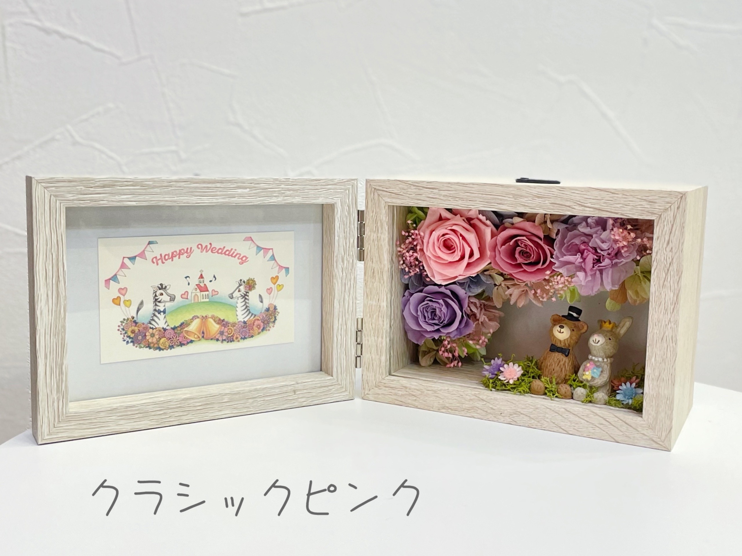 〔参考例〕フレーム:ヨコ型オフホワイト×カラー;クラシックピンク(くま・うさぎ)