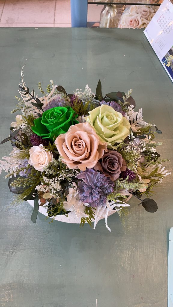 その場でお花の色など変更もできますので送られる方への思いを馳せる商品を一緒にお選びさせていただくお手伝いをさせていただけます。